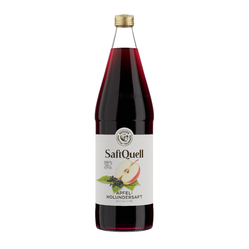 Apfel-Holundersaft – erfrischender Fruchtsaft aus dem reinen Geschmack der Natur. Sorgfältig hergestellt aus frischen Äpfeln und Holunderbeeren bietet diese Sorte der Saftquell ein natürlich süßes, im Abgang leicht herbes Geschmackserlebnis. Jeder Schluck ist ein reiner Genuss, der die Frische und authentischen Aromen der beiden Früchte widerspiegelt.